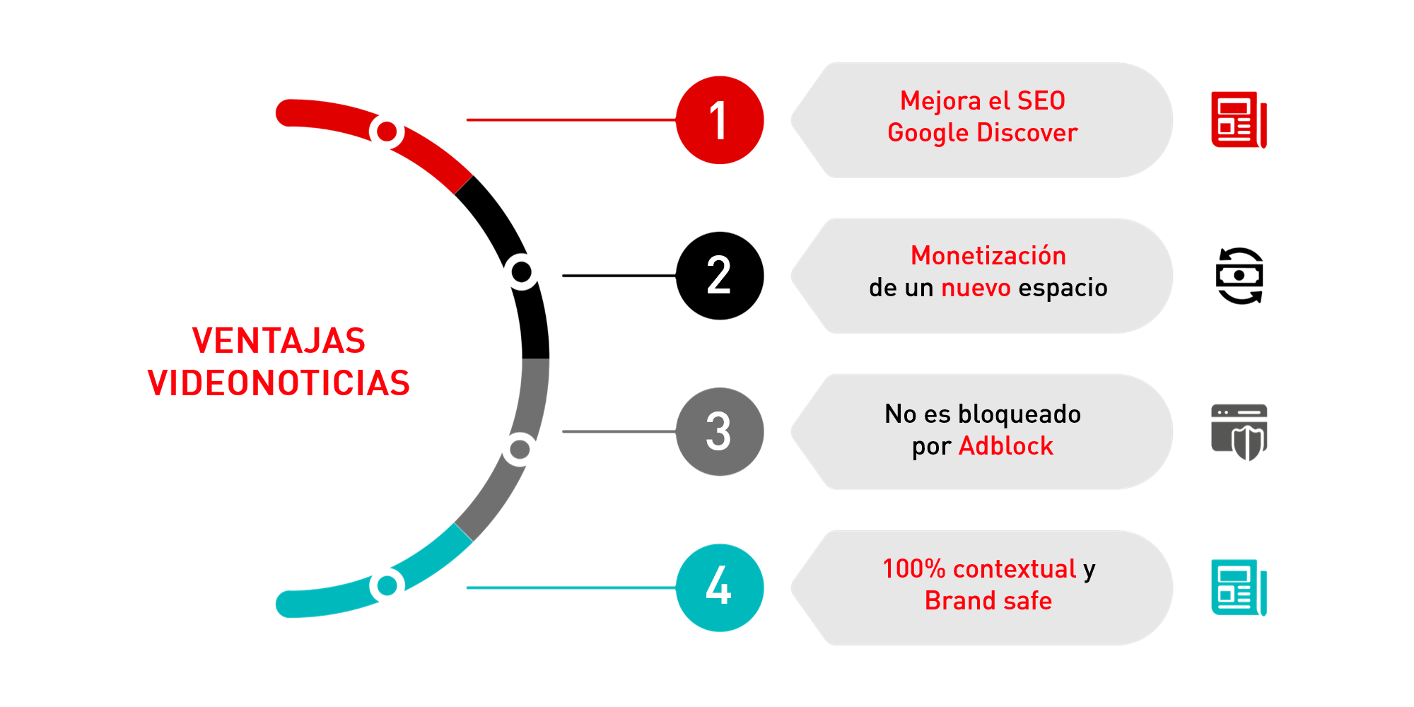 Estas videonoticias son 100% monetizables en web y redes sociales, contextuales, brand safe y, además, la publicidad no puede ser bloqueada por Adblock.